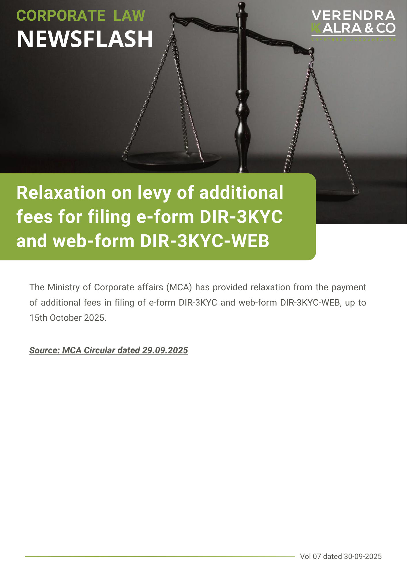 Relaxation on levy of additional fees for filing e-form DIR-3KYC and web-form DIR-3KYC-WEB September 30, 2025