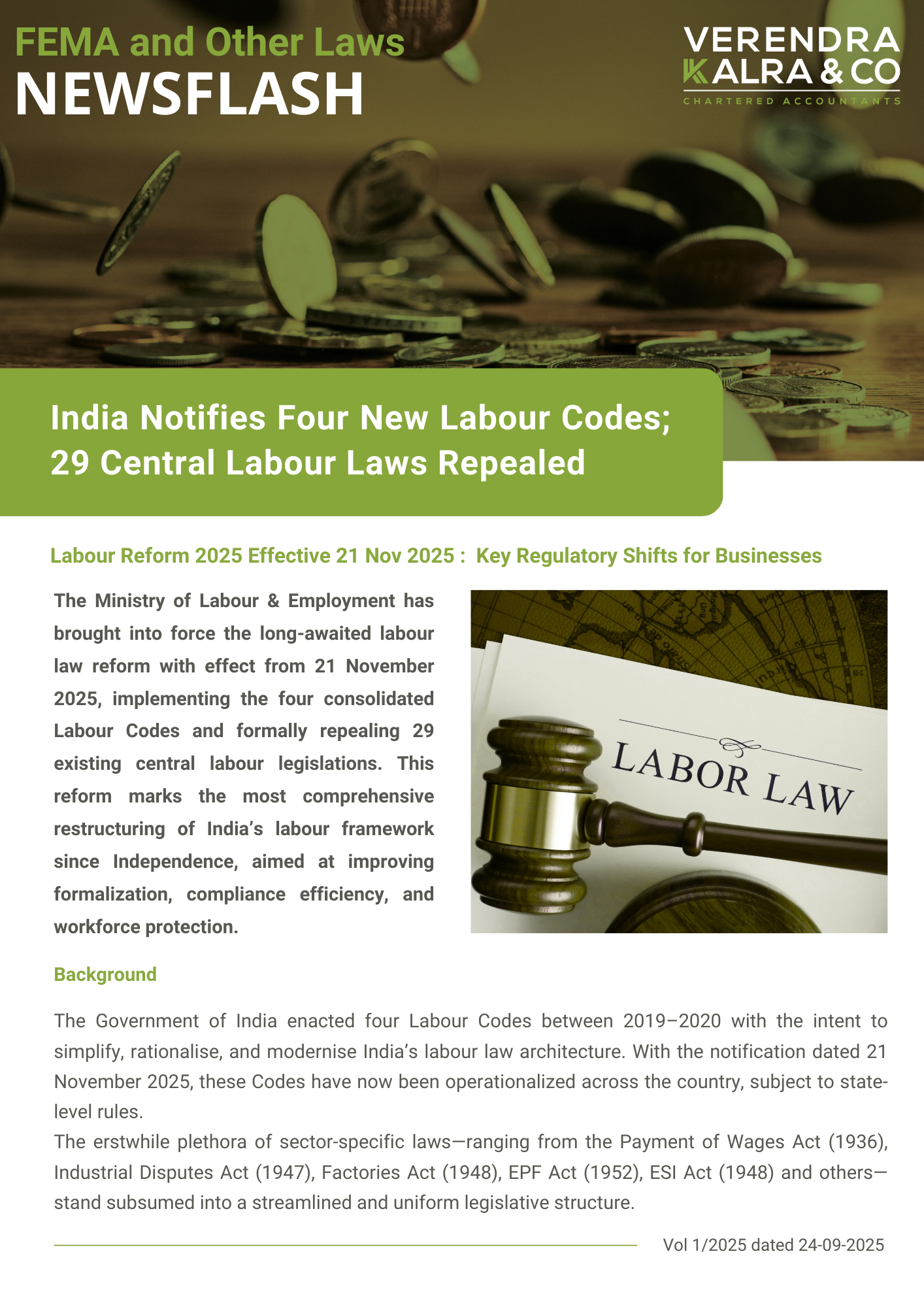 India Notifies Four New Labour Codes; 29 Central Labour Laws Repealed November 24, 2025