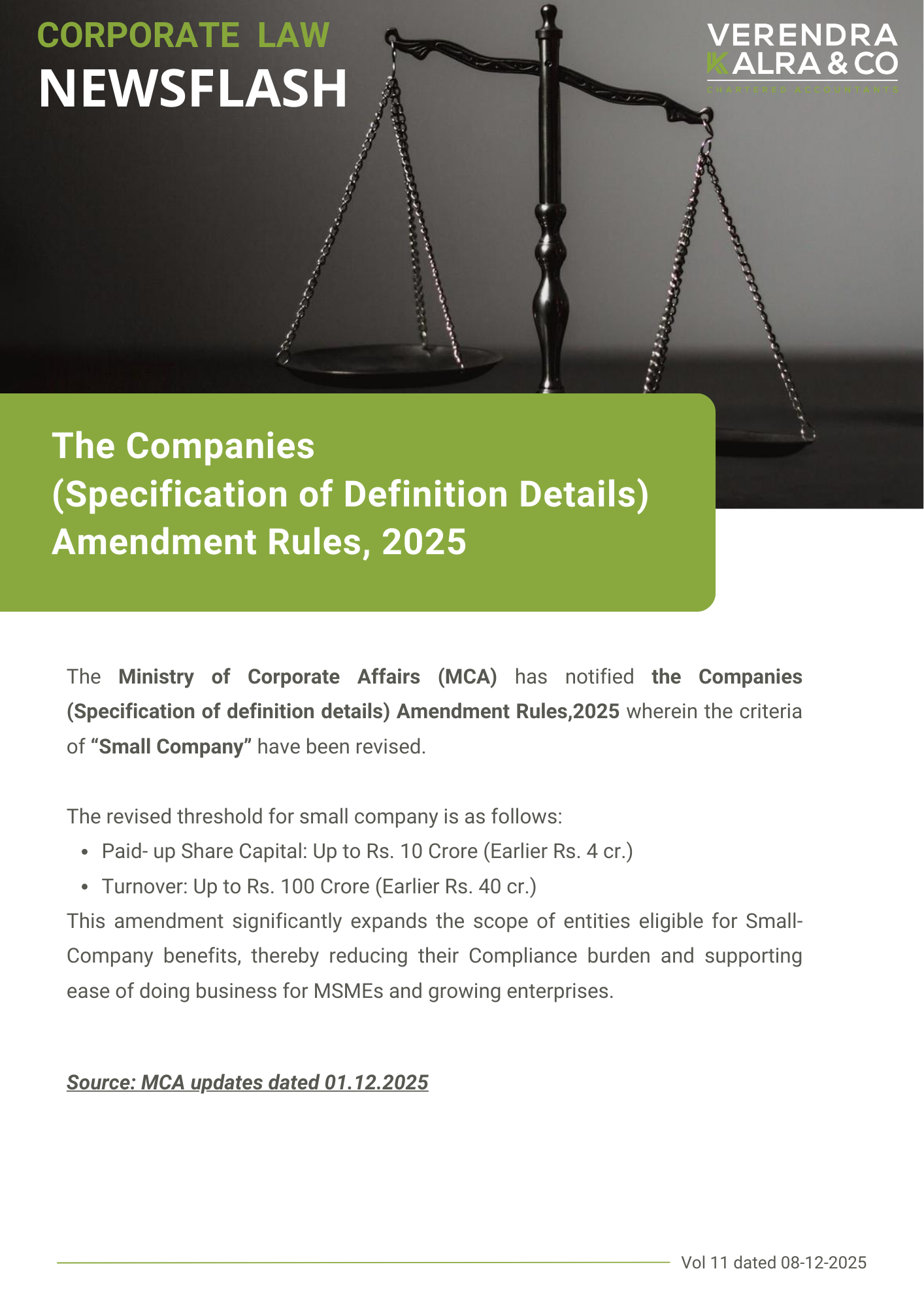 The Companies (Specification of Definition Details) Amendment Rules, 2025 December 08, 2025