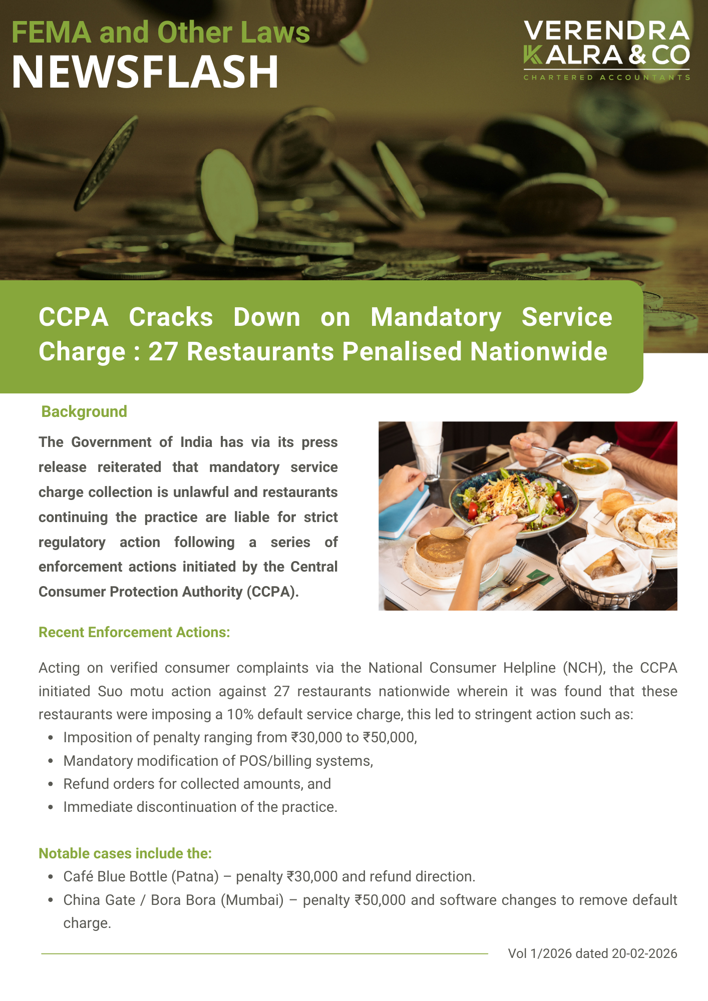 CCPA Cracks Down on Mandatory Service Charge : 27 Restaurants Penalised Nationwide February 20, 2026